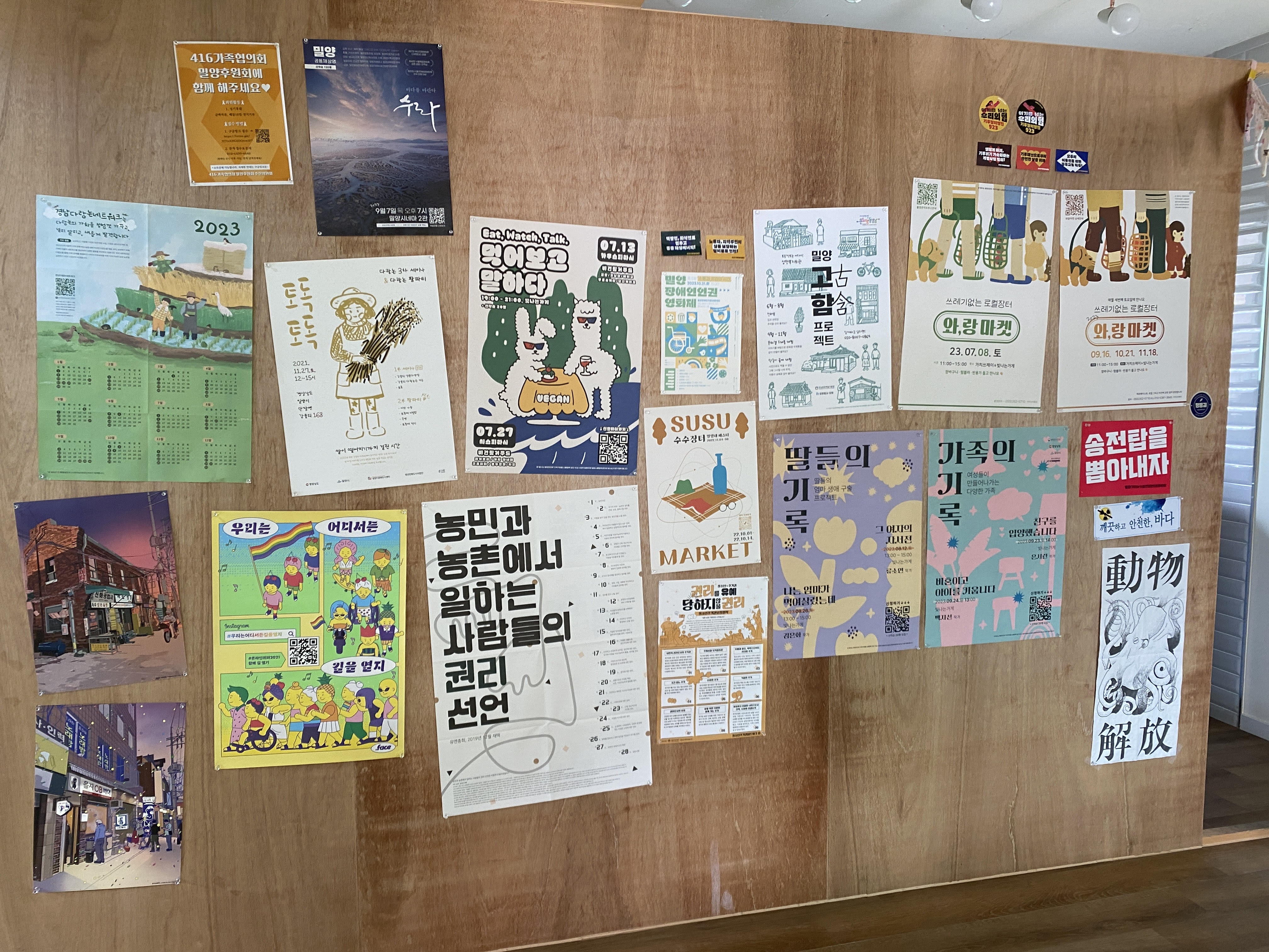 빛나 : 한 5~6년 전쯤에 아수나로 청소년 활동가분이 지역에서 열심히 활동하셔서 한동안 청소년 운동에 대해 이야기했어요. 그땐 지역사회가 청소년과 잘 소통할 수 있는 창구 같은 것이 필요하단 생각도 많이 했던 것 같아요. 그분도 청년이 되어 다른 운동 영역으로 넘어가면서 활동이 더 이어지지 못했어요. 그 외에는 청소년에 관한 이야기가 잘 안 들려요. 특히 청소년이 탈가정하면 대구나 부산, 창원 같은 주변의 큰 도시로 다 가는 것 같은 느낌이 들 정도로 잘 안 보이고요. 분명 밀양에도 탈가정 청소년들이 있을 텐데, 지원이 별로 없는 것 같아요. 차로 한 시간 정도 떨어져 있는 창원에서 한 시민사회단체가 청소년 밥차를 운영한다고 들었거든요. 밥차 운영을 통해 탈가정 청소년을 만나고 그들이 겪고 있는 폭력에 같이 대처하기도 한다더라고요. 그래서 저도 한동안 밀양에서 밥차를 운영해 보고 싶다는 고민을 했던 적이 있었어요. 그때는 상황이 여의치 않아서 준비하지 못했는데… 그러네요. 오늘 이렇게 이야기하다 보니 나 밥차 하고 싶었네(웃음).